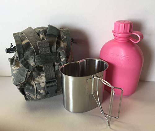 BRAND NEW US MILITARY 1 QUART CANTEEN U.S. MADE, WITH BRAND NEW MILITARY STYLE STAINLESS STEEL CUP, BRUSHED MATTE FINISH, IMPORTED. BUTTERFLY HANDLE. With Used Genuine G.I. Surplus, ACU MOLLE II Pouch Kit. Some might have some spots, and some markings are rubbed off but they are all functional good condition.