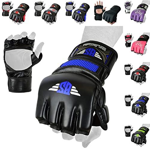 - PU Leather Premium Material: The MMA Gloves made by premium synthetic leather for lasting durability and strength, makes this punching bag gloves great for frequent training. Synthetic leather promises long-life and maximum performance of these MMA gloves against wear and tear. These grappling and sparring MMA training gloves are engineered for high performance. These MMA Boxing Gloves are smooth, soft and Wear-resistant. High-density EVA sponge Filler.