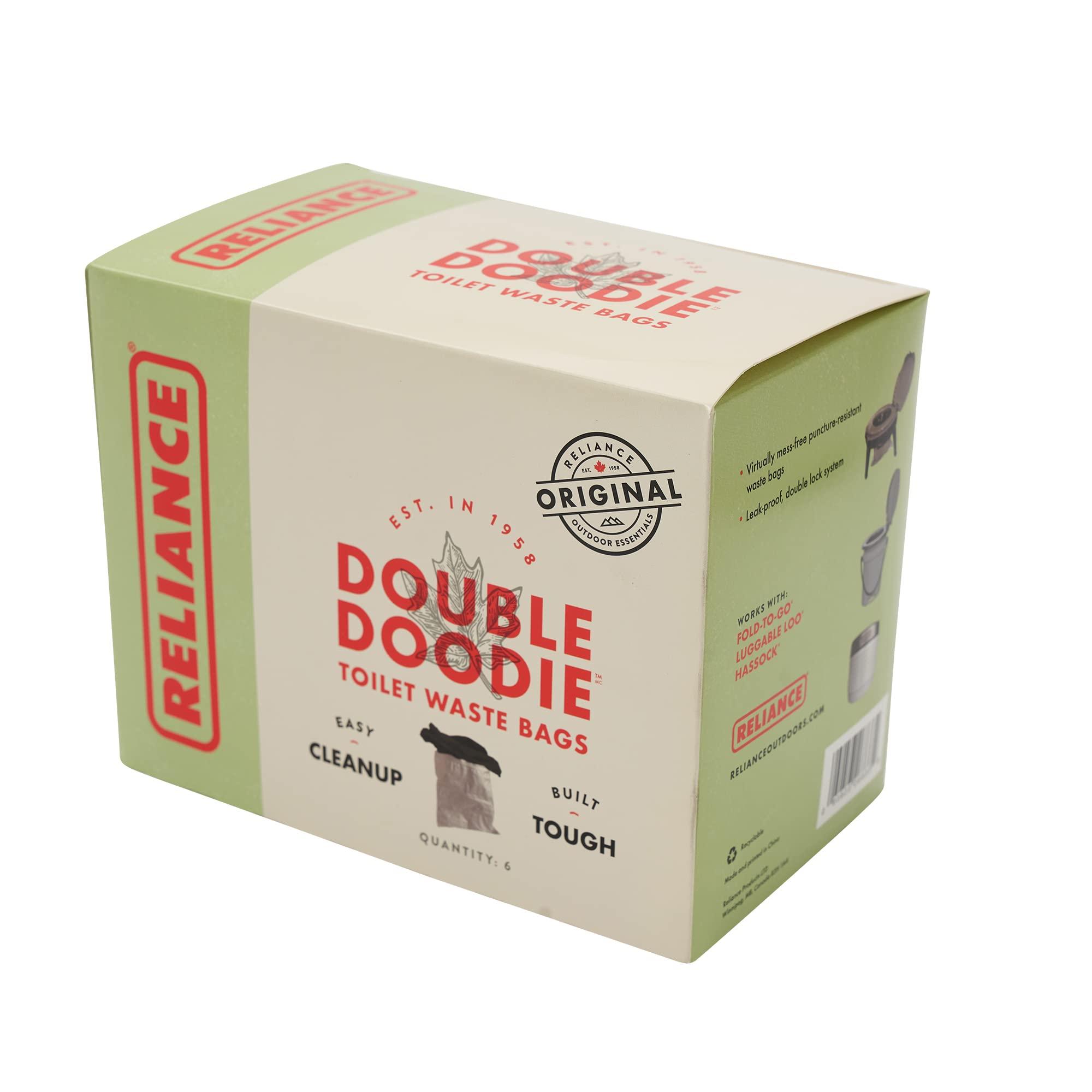 - PRACTICAL: Reliance DOUBLE DOODIE Toilet Waste Bags are the ideal waste solution. Its two bags in one. The black interior bag contains the waste and the gray exterior zip lock bag adds a second layer of durability and reliability